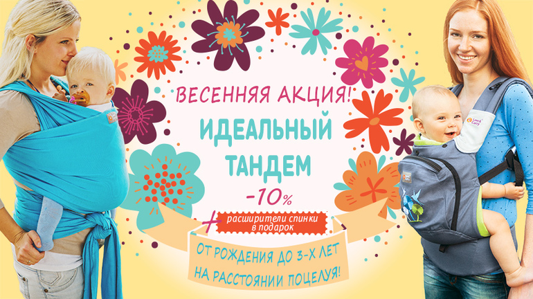 А так как впереди целый сезон прогулок на свежем воздухе, мы запускаем новую акцию: с 6.03.15 по 27.03.15, приобретая вместе тканый или трикотажный слинг-шарф Love & Carry® и эрго-рюкзак Air, получите скидку 10% на весь заказ, а также расширители спинки для эрго-рюкзака в подарок.