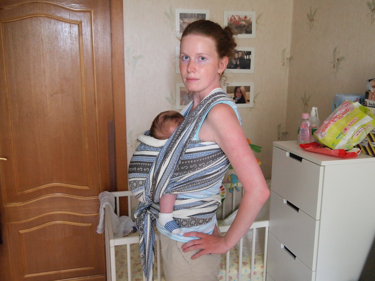 Во-первых, у меня постоянная проблема с натяжением верха кармана. Натянут недостаточно, так? В видеороликах ловко так потянули-притянули, а у меня так не получается. Ребенок в процессе отталкивается от меня руками и норовит свеситься то в одну, то в другую сторону, и почему-то иногда тяну жгут из-за спины вверх и в сторону, а ребенок плотнее не притягивается. Что я делаю не так? Какую видеоинструкцию еще посмотреть кроме слингопарковской?