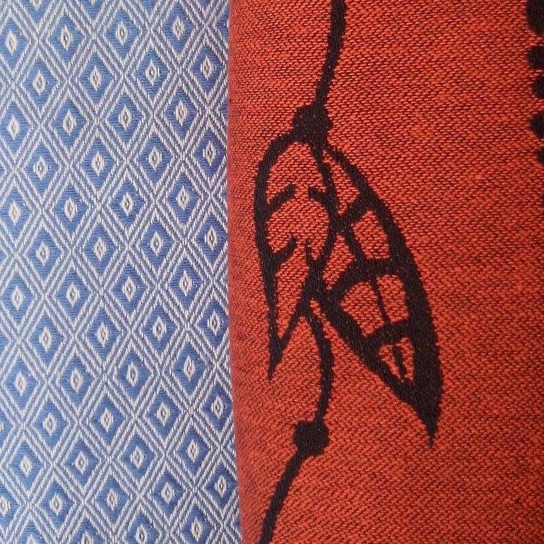 Признаюсь честно, к простому интересу, добавился и интерес сравнения. Ведь совсем недавно я в рамках слингокроссинга мотала шарф Мэнкэрэ гранатовый производителя Амама, который как 2 капли похож на Диамант. Теперь могу сказать точно, похожи они не только внешне, но по ттх.