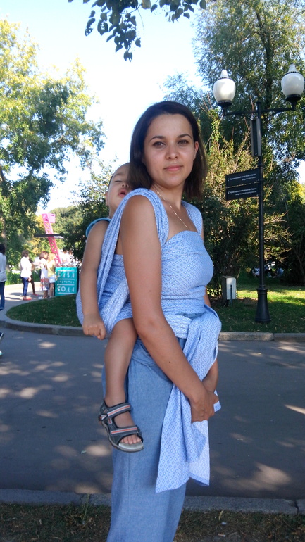 НовинкиВсем привет! С вами снова мама Луиза и 2 сына, слингосын Артём и фотограф Димон. Сегодня мы будем вам показывать новинку от Мать Ехидны по имени Диамант в расцветке скай.