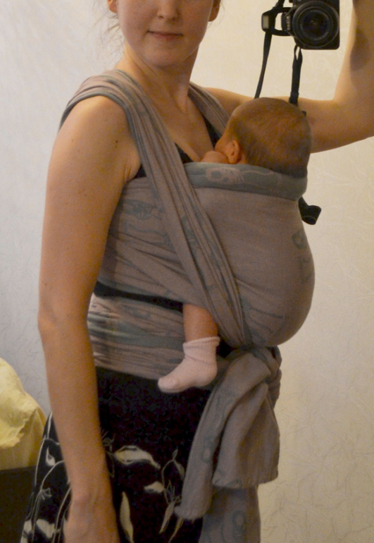 Учимся носитьНошу в слинге уже где-то полтора месяца. Проверьте, нормально ли получается намотка, стараюсь регулировать натяжение, как могу)