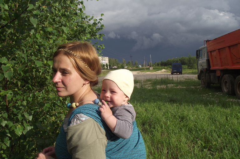 С вами были мама Оксана, Даня (3 года, слигоребенок на пенсии) Саня (10 месяцев, действующий слингожитель) и папа Артем.