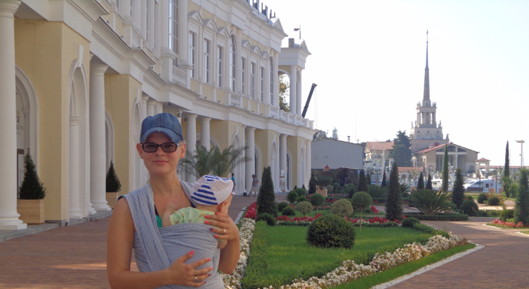 При знакомстве с шарфиком-слинг я поняла, что мне нет необходимости отказываться от долговременных прогулок и посещения, необходимых и интересующих меня мест.