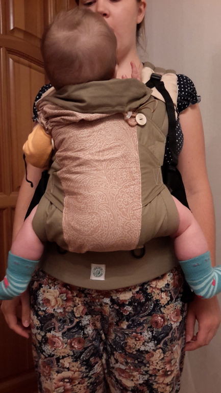 По фронтальному фото непонятно, где проходит вторая ручка ребенка, лямочка сверху плеча? Там почему-то складки собрались, как будто ручка сверху.