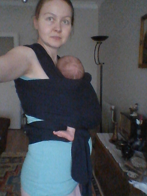 Попыталась сделать валик, но он слишком тонкий получился, будем искать плотнее тканюшку. А сама намотка как? Малыш почти сразу уснул. Пробовала наматывать раз пять за весь наш месяц, обычно сразу видно, что неудобно и начинает хныкать, но два раза сразу уснул, как и сегодня )