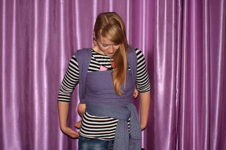 Во все намотки мотается чудесно, ложится уютно, жгуты в руках после полульна от Нати кажутся тонкими совсем) Единственное, что мне показалось неудобным - узел из за цепкости полотнищ затягивается плохо, особенно если нужно его вязать сзади.