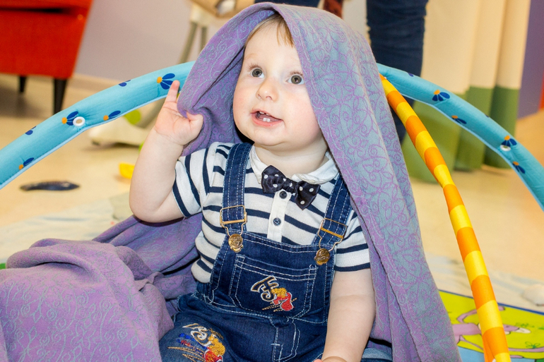 Перед передачей другой тестирующей слингомамочке сводили шарфик в игровую комнату, где и помотались напоследок. Виглпруф