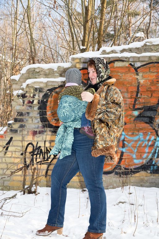 С рождением моего третьего ребёнка, началась и моя слингоистория. Правда, вышла она немного однобокой: я носила её в трикотажных шарфах и ССК всё лето и часть осени, пока было тепло, под флисовой слингокурткой в том числе. А потом пришли холода, я достала свою «беременную» слингокуртку, примерила её с беременной вставкой и поняла, что моего морального духа не хватит на то, чтобы в таком виде выйти на улицу…. Мне казалось, что по габаритам я тяну на кусок от айсберга, что стоит только мне выйти на улицу, все будут показывать на меня пальцем, и я просто этого не переживу… Куртка была отложена в долгий ящик, я раздобыла фаст-рюкзак и какое-то время носила ребёнка в нём поверх одежды.