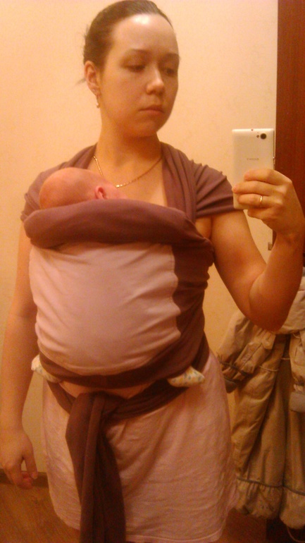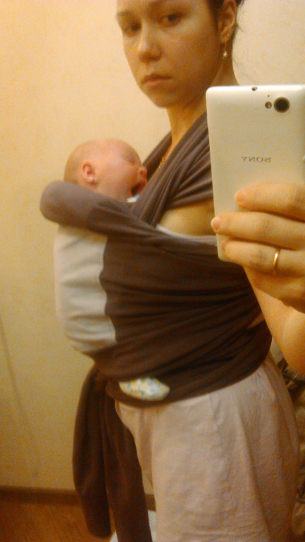 Учимся носитьСегодня поработала над позицией, в данный момент дочь спит как сурок в слингодомике.