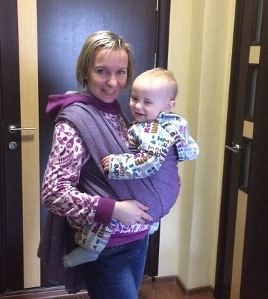 На вид мягоникий и толстенький, а вот намотав я была ооочень приятно удивлена - Madonna оказалась тонюсенькой и прекрасно облегающий. Пошли на прогулку на 30 минут - шарфик справился отлично с нашими 12! кг, вообщем прямо шарфик - молодец!