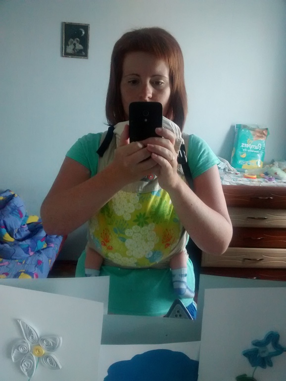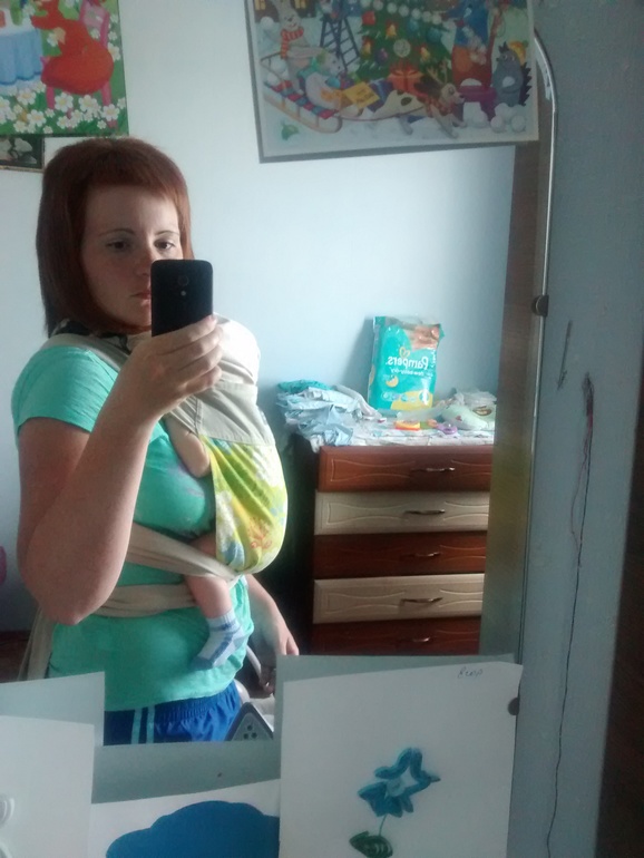 Ну вот теперь кажется получается что вы попу сплющили... вроде так вам еще нельзя полотнища расправлять или можно... Знаете, тут есть консультация от слингоконсультанта каждое 10 и 20 число месяца, посмотрите, отдельная категория в этом сообществе, напишите туда, мне она очень помогла как раз с май-слингом.
