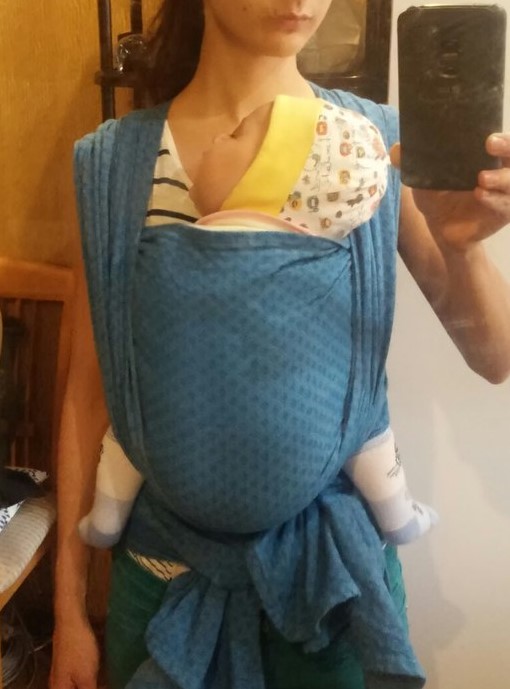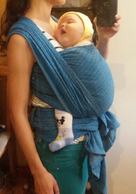 Итак, я намотала перед выходом из дома слинг на спящего ребенка.