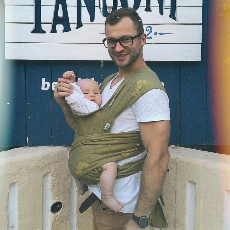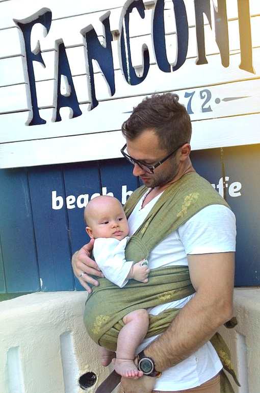 Первое лето малыша его носит май-слинг Плющ от Mams Era, хлопок-лен,довольно легкий и продуваемый. Был обкатан на пляж и дальние расстояния,наш маленький слингожитель доволен и чудесно в нем спит!!! На моих мужчинах натуральные льняные изделия ручной работы. Берегут прохладу и легко отводят влагу.
