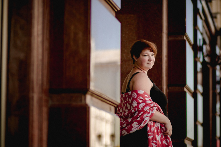 Ну а дальше, чудесным образом, мироздание подарило мне и персикам фотосет от Нины Архиповой. Предлагаю посмотреть, как шарф выглядит в намотке. И вне её, кстати, тоже)