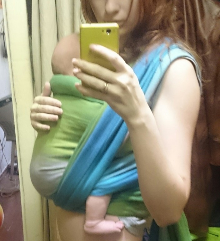 Малыша чуть прямее хочется поправить. А так все отлично на мой взгляд. Но я слингом редко пользуюсь.