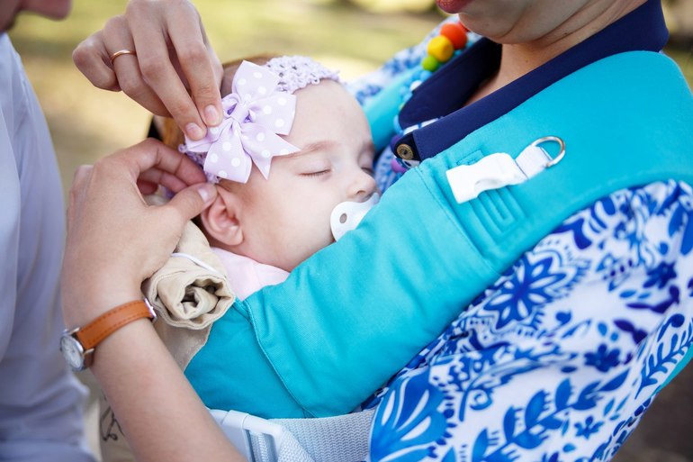 2. Примерять слинг, надевать его первый раз с ребенком лучше в первой половине дня. Когда ваш малыш выспался, покушал, сделал все «свои дела», он бодр, весел и готов к постижению нового.