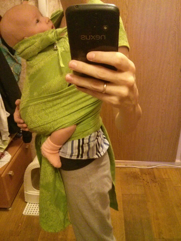 Наматываю как научили в магазине. Там не получилось почувствовать как распределяется нагрузка, ребенок сильно плакал, сразу бегом развязали всё.