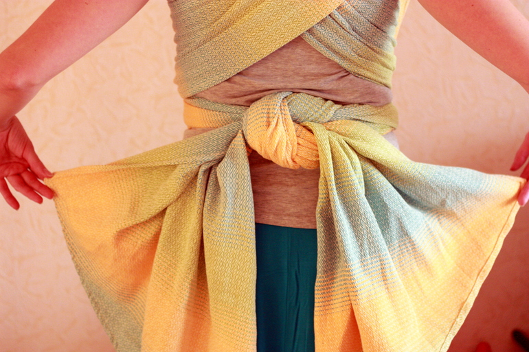 Состав: хлопок, алмазное плетение, градация. Слинг-шарф из категории бюджетных, по плотности ближе для ношения младенцев, да и по моим ощущениям тоже. Сейчас дочь весит 6 кг и в слинге очень комфортно, с бОльшим весом можно сделать намотку трехслойной. Первый раз мотали Симбио примерно при весе 4,5 кг. Мои ощущения от шарфа самые приятные с младенцем, считаю что он отлично подойдет новорожденному и на первые полгода-год жизни пока будет комфортно маме, а также не очень тяжелому ребенку на лето. За спину Симбио мотать легко и удобно.