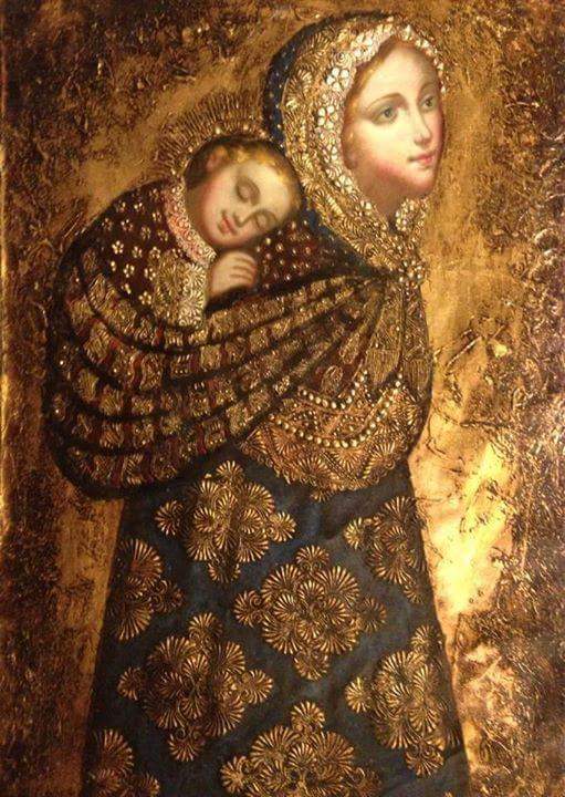 Думаю, нашим бабушкам не очень близка современная латиноамериканская живопись) а вообще в западноевропейской религиозной живописи Мадонна часто использует перевязь, особенно в сюжете "Бегство в Египет" (ехать долго, руки устанут)))