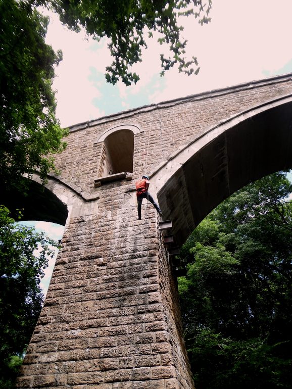 После эффектного спуска с 20-ти метрового моста, Александр мастерски намотал слинг-шарф (благо , альпинистам не привыкать мотать разные штуки, поэтому освоил практически моментально))) и был готов к фотосессии . Как вы видите на Саше оранжевая майка, синие джинсы, сине-голубая кофта (привет из 80-х!), оранжевые кроссовки и необычные аксессуары -голубая каска, страховочная система(тоже кстати с оранжевыми элементами), ну и веревка, куда ж без нее настоящим альпинистам?! И так, предлагаю насладиться фотографиями этих брутальных мужчин.