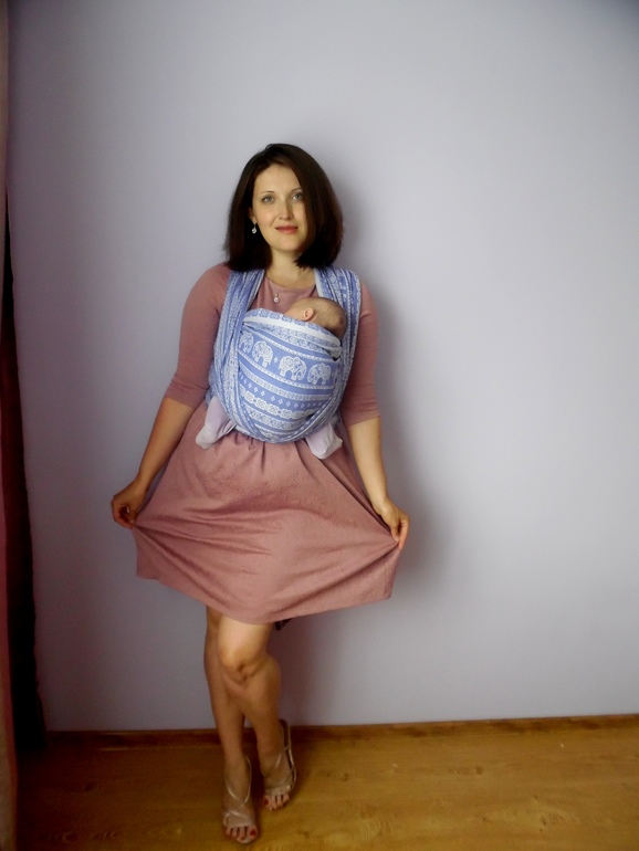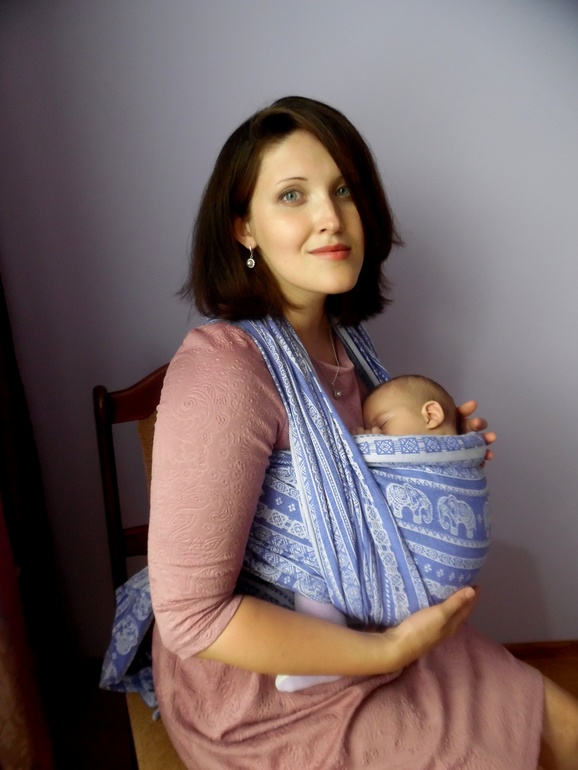 Мне понравился интересный паттерн Слоников , который хорошо смотрится в намотке, его можно сочетать как с джинсами, так и с повседневным платьем. Шарфик не маркий, практически не мнется. Ткань довольно плотная и толстая, хороша для деток постарше, рисунок выпуклый, за счет этого намотка не ползет, а вот для таких малышей , как мне кажется, грубоват. 6,5 кг держит замечательно, но по нему видно, что и 10-12 легко потянет. Для лета он скорее всего будет жарким, но на зиму и межсезонье самое то.