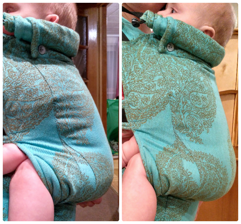 Один большой для меня минус переносок, отличных от шарфа, - недостаточная просадка попы. Дома экспериментировала с рюкзачком и бинго! Я никогда не пробовала носить эрго с параллельными лямками. Для меня это стало открытием - с параллельными просадка намного лучше, хотя нести уже не так хорошо. На коллаже слева перекрестные лямки, справа - параллельные. В общем, этот вот выбор между правильным положением и удобством не очень меня устраивает.