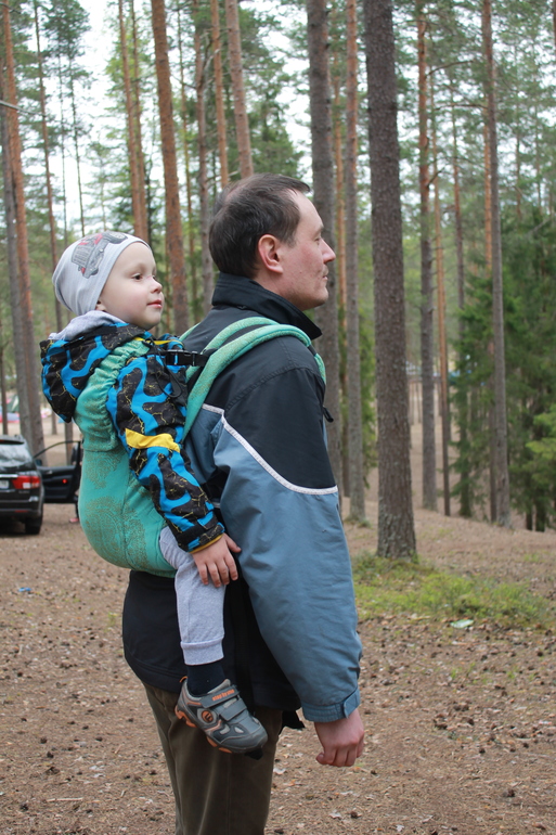Так.. дальше про то, ради его это все и задумывалось) Слингорогейн. Там я оценила эрго в полной мере. Неползающий пассажир кочевал с меня в коляску постоянно. Мотать его постоянно в шарф, конечно, можно было, но сосновый лес, иголки на земле. Не очень хотелось это все мести по сто раз. И тут в помощь пришел рюкзачок. Деть в нем и спал, и ел. Бесспорно удобно, быстро и чисто) На тостовку эрго садится уже намного лучше. Врезаться стропам уже некуда)