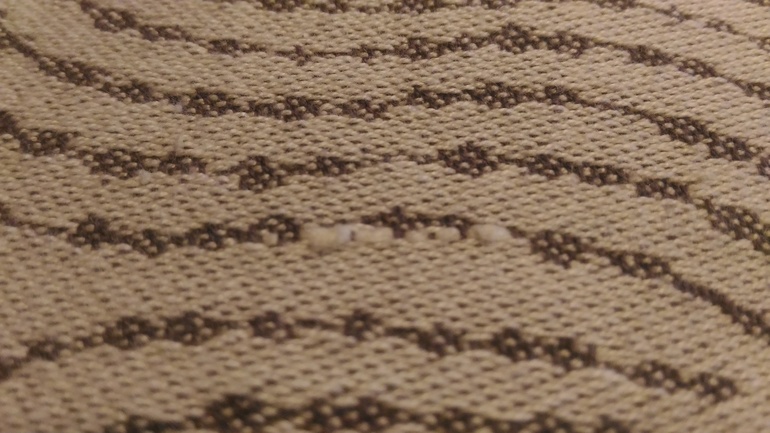 Подшит на два борта. Все швы аккуратные, нитки не торчат. На полотне есть несколько узелков, утолщений и мелких пороков ткачества. Такая беда характерна для шарфов произведенных в Индии. Те же Дивы имеют схожие проблемы.
