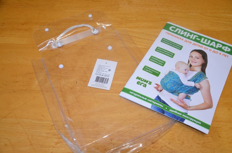 Новый слинг упакован в силиконовый конверт. Лично мне очень нравиться шить из этих конвертов кармашки на стену - детям под всякие мелочи: прозрачно и прочно.