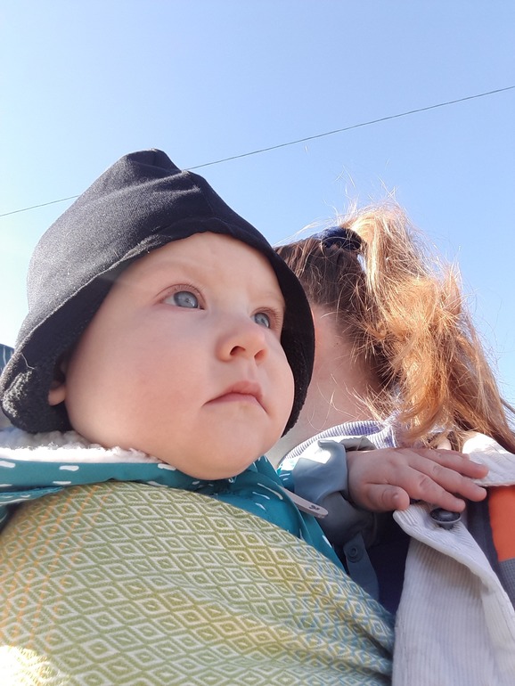 На малыше хб+мембрана+слинг, на мне хб+хб+поверх вельветовое пальто. Малыш не пискнул! На улице +3 было. Горячие вернулись.