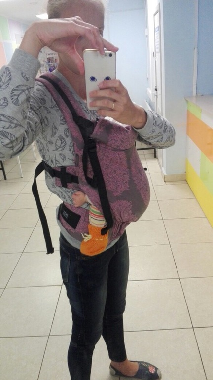 Я так поняла, это рюкзак Diva, который без вкладки. Мне кажется, можно - по ширине он у вас отрегулирован и м-позиция есть. А вот по высоте надо уменьшить - голова не должна быть внутри рюкзака