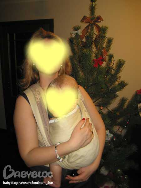 Его можно по-разному мотать, тогда видно либо только бежевую половину (фланельку), либо шоколадную (там молочный шоколад). Можно показывать липки, а можно немного сместить шарф, и их видно не будет, будут только листики (как на фото). А еще с ним изумительно светится кожа своя и малыша. Ну и бежевая сторона - мечта кинестетика, осенью и зимой мотала в нее малыша в одном бодике.