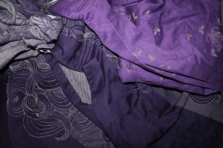 Добрый день! То есть вечер) Остались только бабочки и фумус (№№1 и 2). Фирма производитель всех — Natibaby. В носке зарекомендовала себя хорошо) У меня дочка тяжеленькая) так что опробованы на собственной спине. Оба оставшихся ССК подходят для тяжеловесиков. Разница в составе, это уж, что Вам ближе. Бабочки одна девочка заняла, но пока точно ничего не сказала, так что пока что расскажу про оба. Бабочки с коноплей, у меня есть такой же расцветки и с таким же узором шарф (если поищите в моем дневнике в разделе шарфянка, то найдете отзыв про него). Его использую довольно часто. Разносился довольно быстро, стал мягким, хотя поначалу был жестковат. Фумус тоже хороший вариант. Обычно в слингах используется либо один либо 2 материала, редко 3. В этом как раз 3. Шелка этой фирмы боятся не стоит, он даже в составе только с хлопком очень грузоподъемен (мы в год около 13-14 кг весили), холодит в жару и греет в холод, а тут еще и лен немножко в составе, это делает сск еще более грузовозным, но также, нужно сказать, что он сейчас довольно жесткий. Правда думаю, уже после стирки и глажки (без отпаривания, так как шелк может потерять свой блеск) должен стать пластичнее. Ну и активное использование тоже поможет, конечно)) Так что, как Вы поняли, я вопросов не боюсь, если есть еще — задавайте)))))