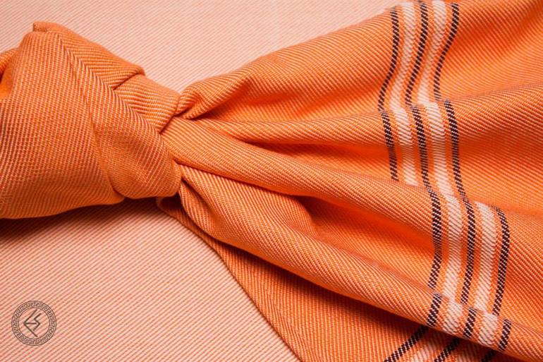 3,5 метра фантастического на ощупь и по намоточным качествам шарфа! 53% шелка, 5% кашемира в составе. Пухлый, держучий! Шикарен для тоддлеров и летних вечеров, на жару этот шелк не пойдет. А цвет! Апельсиновое мороженное! Шарф вандалоустойчивый, зацепки поставить почти нереально. Мотается неэкономно, как тройка. Ложится очень мягко, вообще никуда не врезается.