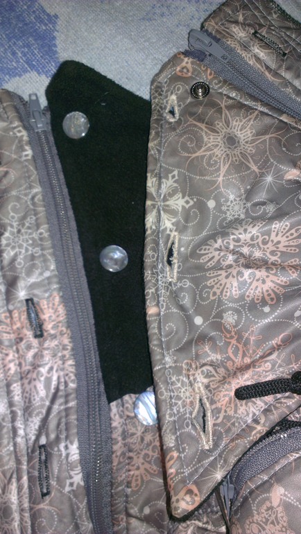 Были кнопки, но быстро повылетали. Я сделала вместо них пуговицы с петлями. Так надежнее. Тоже чуть позже сделаю фото.
