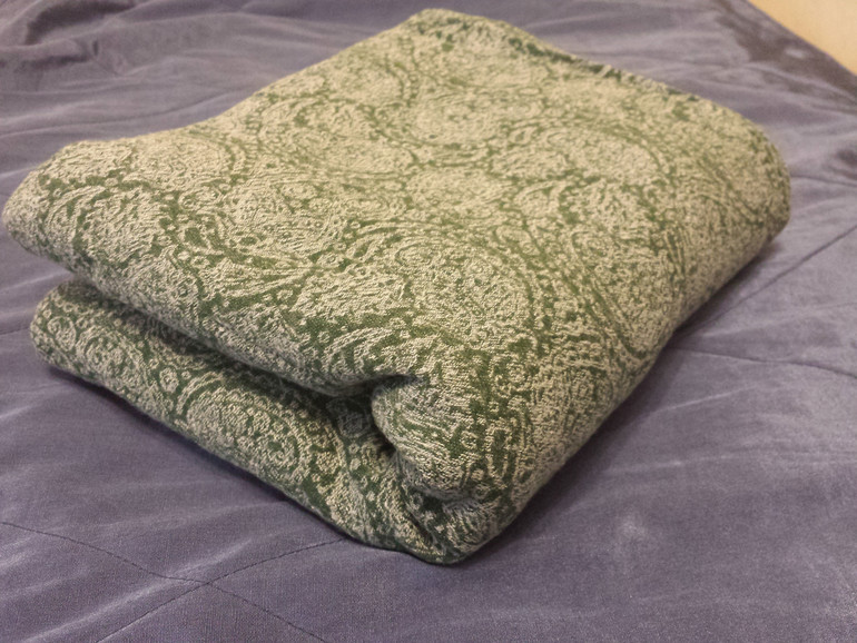 Я мотала пару раз дома. Покупала у девочки пару недель назад за 3 т. за столько же и отдам. Я надеялась проносить сына все лето в хваленом бамбукохлопке, но мой 7 кг сын слишком отвисает, намотку разбалтывает. Могу поменять на что-то со льном.