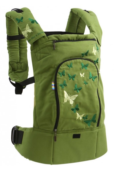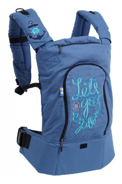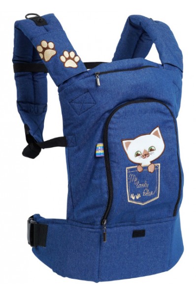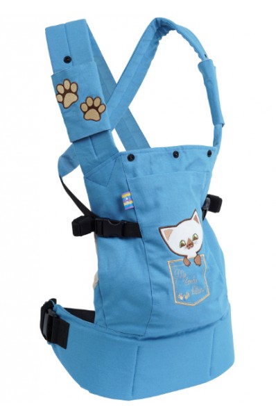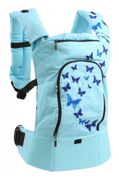 Широкие лямки с поролоном располагаются параллельно друг другу на спине. Рюкзачок имеет вытачки в области попки малыша для более удобной посадки в М-позицию. В эрго-рюкзачке малыша можно располагать спереди, сзади и на бедре.