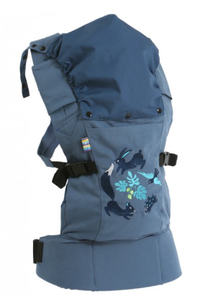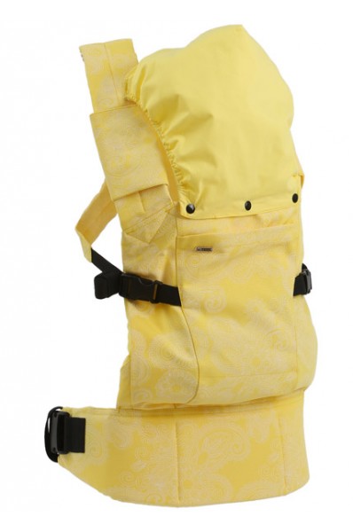 На спинке эрго-рюкзачка есть плоский карман для мелочей. На поясе крепится съемная стропа для сворачивания эрго (можно использовать в качестве хип-сита). В комплекте идет капюшончик на кнопках, а также накладки на лямки для сосания.В рюкзачке-переноске Вы можете разместить малыша в положении "спереди", "сзади", "на бедре".