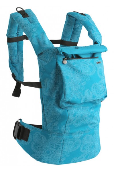 На спинке эрго-рюкзачка есть плоский карман для мелочей. На поясе крепится съемная стропа для сворачивания эрго (можно использовать в качестве хип-сита). В комплекте идет капюшончик на кнопках, а также накладки на лямки для сосания.