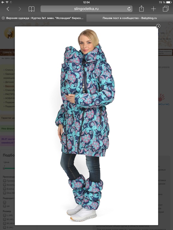 Продаю слингоодеждуКупила в сентябре этого года, но ошиблась с размером. Курточка с бирками, размер 46. Цена 8000. Куртка очень понравилась, буду заказывать такую же, только меньше размер. В беременность покупала все 46, уже по привычке взяла этот размер)