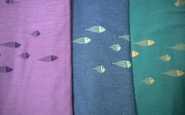 2. Рыбки прекрасная Лао, длинная 6-ка, 5,00х0,70 50% конопли, релиз 2012 года. Конопля разношена. Из заводских косяков - мережка через все полотно в 22 см от нижнего борта (если рыбки не вверх ногами), отметки зондера нет, но тем не менее. Мережка на фото. В намотке не видно, уходит в полотно между мамой и деткой. Из приобретённых - чуть пушиться конопля. 4500 4000