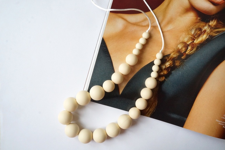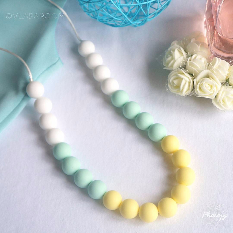 Пообщавшись с некоторыми мамочками я поняла, что не все готовы носить "детские" цвета: розовые, желтые, зеленые.. поэтому хочу предложить более спокойные варианты бус, которые можно будет носить и в повседневной жизни, на работу.
