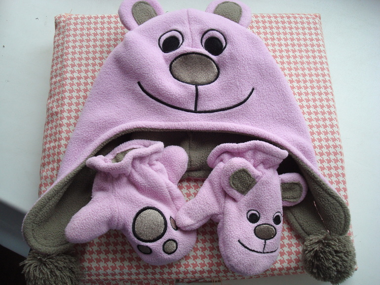 двойная флисовая шапка-шлем хуппа с варежками - 350 руб (носили один месяц) Отлично сочеталась с ленешей