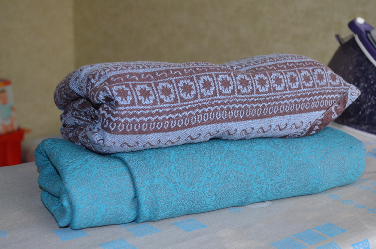 1. Ellevill Paisley Smaragd размер 5, бамбуко-хлопок. Мягкий, тонкий и нежаркий, подходит с рождения. Ношен активно, имеет немного затяжек, практически незаметных в намотке, находятся с изнаночной стороны. 3000+почта