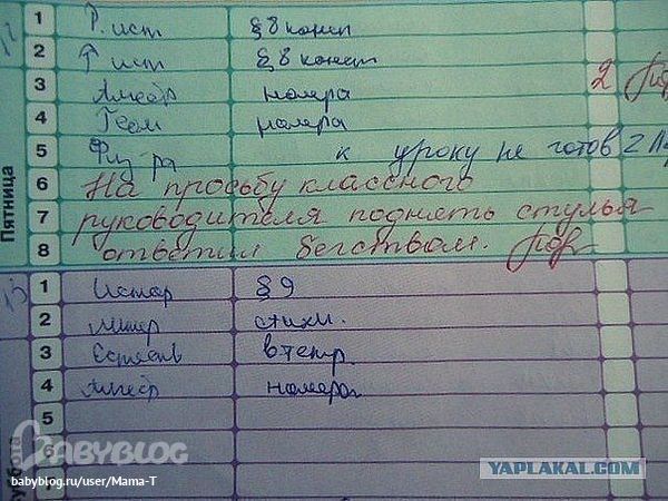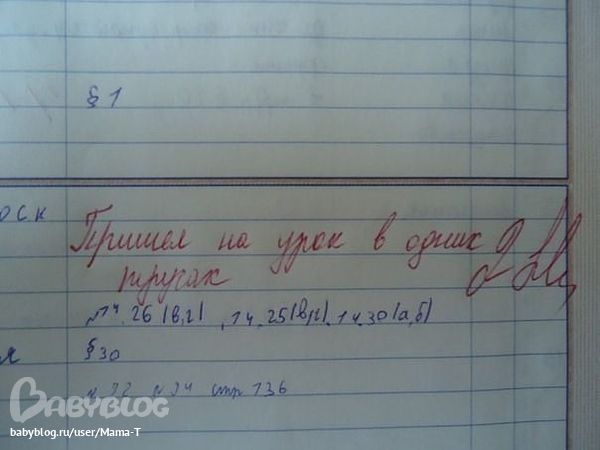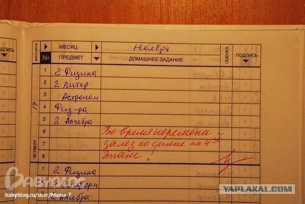 Сначала думала, что дневник вашего ребя))) потом поняла, что ошиблась))) посмеялась до слез)))