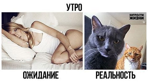Я утром, выключив будильник, сначала кормлю котов (не продрав толком глаза), и только потом иду в ванную комнату умываться. Иначе они своими воплями разбудят весь дом. И своими метаниями под моими ногами меня обязательно уронят.