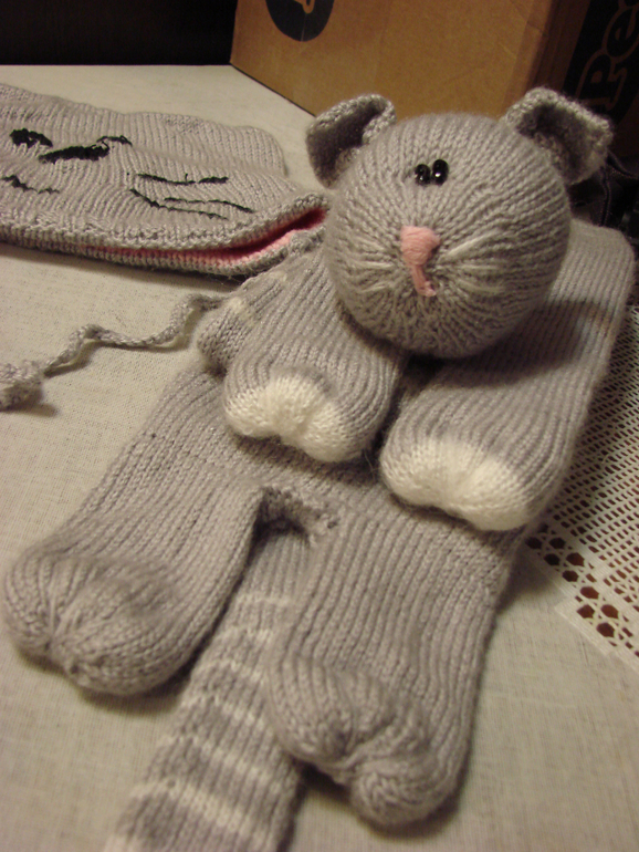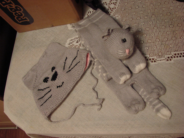 В прошлом году вязала дочке такой комлектик. Кото-шапка и кото-шарфик