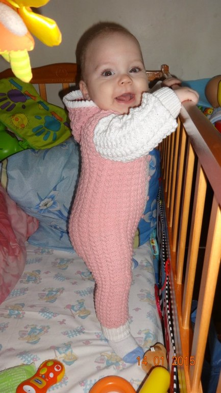 Костюмчики, конверты, комбинезоны, крестильные комплекты для детейПервый мой комбинезон для дочи. Пока довязала - стал маловат ))) но ей вроде нравится)))