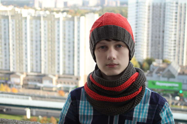 ну и мой Даня в комплекте снуд и шапка из мериноса с кашемиром. носит не снимая всю осень и зиму, говорит тепло. хотя конечно не зимняя шапка совсем.