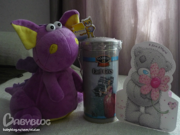 Вот такой замечательный дракоша, который обязательно должен принести удачу в этом году, милая открыточка с поздравлениями и чай со всяческими добавками (лепесточки, цветочки и бергамотовое масло). Спасибо! Спасибо! Спасибо!